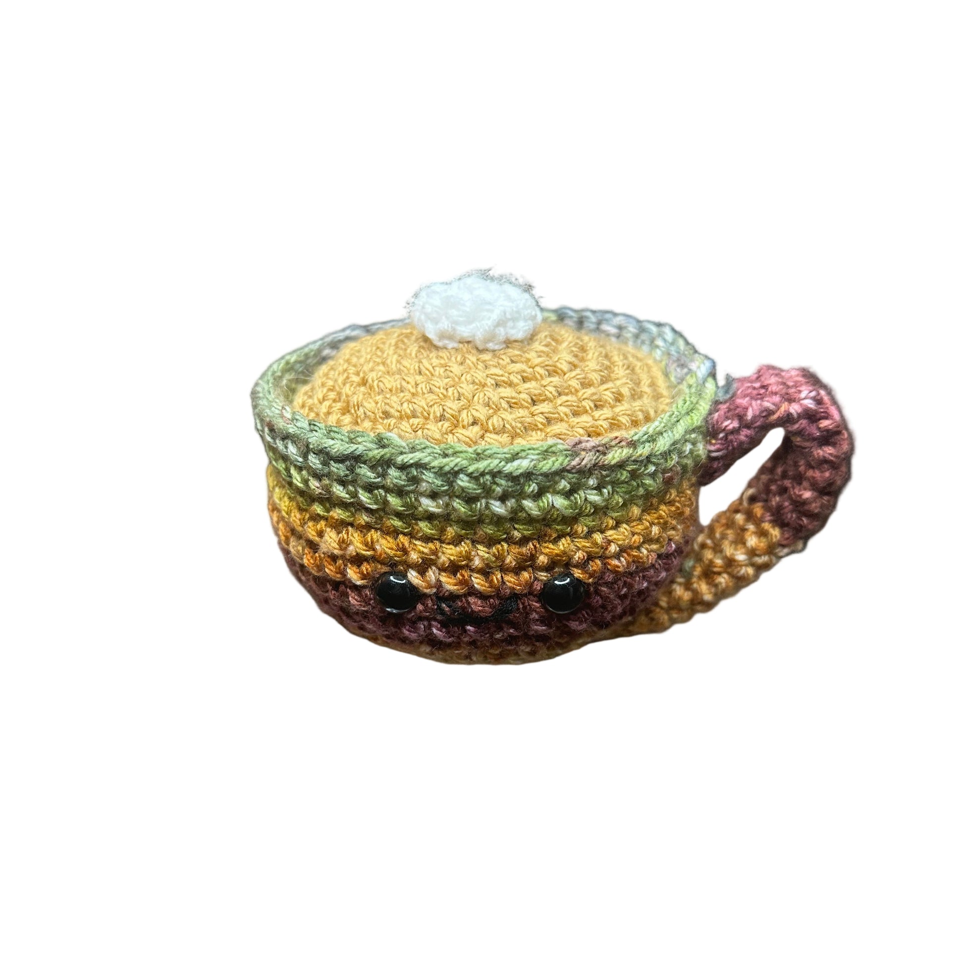 A sweet little taste of fall that never goes cold. This crochet pumpkin spice latte mug is topped with a dollop of whipped cream, all stitched up by hand for a warm and cozy touch. At 4" x 2.5", it’s just the right size to perch on a shelf, brighten a desk, or gift to someone who can’t get enough of pumpkin season. Made with care and a dash of Southern charm, this little mug is a year-round reminder that cozy moments are always in season.