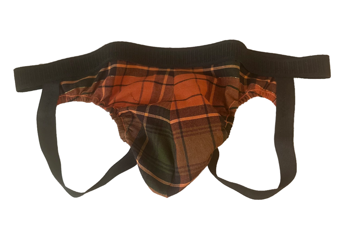 This orange and green plaid jockstrap is all about autumn fun and front-porch charm. With colors straight from a crisp fall afternoon, it’s perfect for bringin’ a little harvest-time warmth wherever you go.